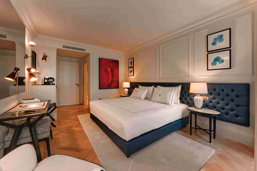 O hotel tem 65 quartos, divididos por diferentes tipologias, nos quais se destacam três estilos diferentes de suítes (21 no total). A média de preços por noite pode variar entre os 250 e os 600 euros. A decoração, concebida por um dos sócios, Antonio Tramontano, tem o “toque italiano” das casas clássicas da alta burguesia transalpina. A unidade contará com restaurante requintado - o Acqua - orientado pelo saber e experiência de um chef Português e outro italiano.