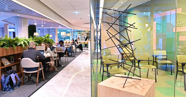 Aqui, é recriado o conceito vencedor do Avila Spaces, com área de lounge, zonas de trabalho individuais e colaborativas, salas de reunião, boots para chamadas telefónicas, copa e uma novidade: uma zona de apresentações, com um anfiteatro, preparada para eventos empresariais ou lançamento de produtos. Um dos destaques é a sala Work City, um “aquário” em vidro, completamente insonorizada, “suspensa” sobre a galeria comercial do Atrium Saldanha.