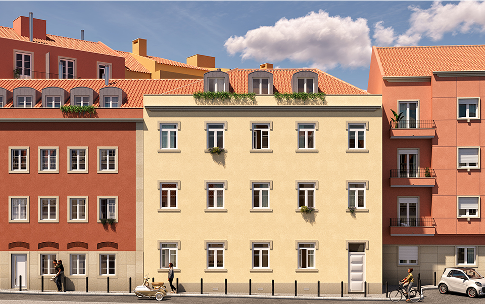 Trata-se de um conjunto de imóveis com cerca de 1.420 m2 de área bruta de construção, repartidos por 31 apartamentos com tipologias T0 (12), T1 (14) e T2 (5). “Neste projecto, o objectivo foi a manutenção de valores patrimoniais marcantes, bem como de elementos que caracterizam este tipo de edifícios, dotando-os de uma estrutura sólida, de conforto, de eficiência energética e de uma espacialidade interior e fluidez adequados à vivência contemporânea”, conforme comenta, João de Sousa Rodolfo, arquitecto e CEO da Traçado Regulador.