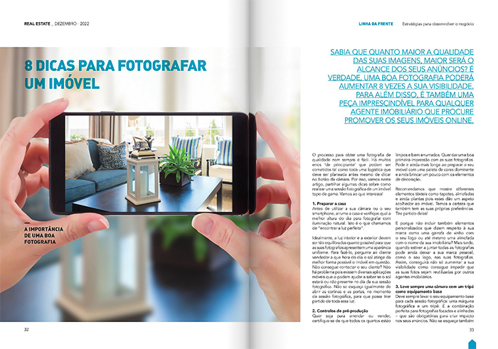 Publicada pela APEMIP e pela UCI Portugal, a recente edição tem vários artigos de interesse e da maior actualidade. De que destacamos: 4 passos para o sucesso nas redes sociais; desafios e oportunidades em 2023; 8 dicas para fotografar um imóvel; novas tendências tecnológivas;.. e tantos outros.