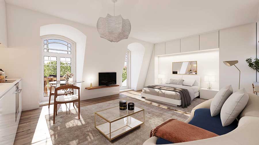 As tipologias do novo empreendimento vão do T0 e T3, com áreas os 58 e os 233 m2.