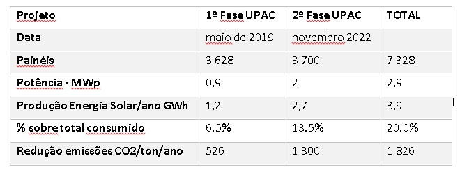 Com o novo parque fotovoltaico é também possível uma redução nas emissões de CO2 em 1826 toneladas/ano, o que corresponde à plantação de cerca de 47 mil árvores.