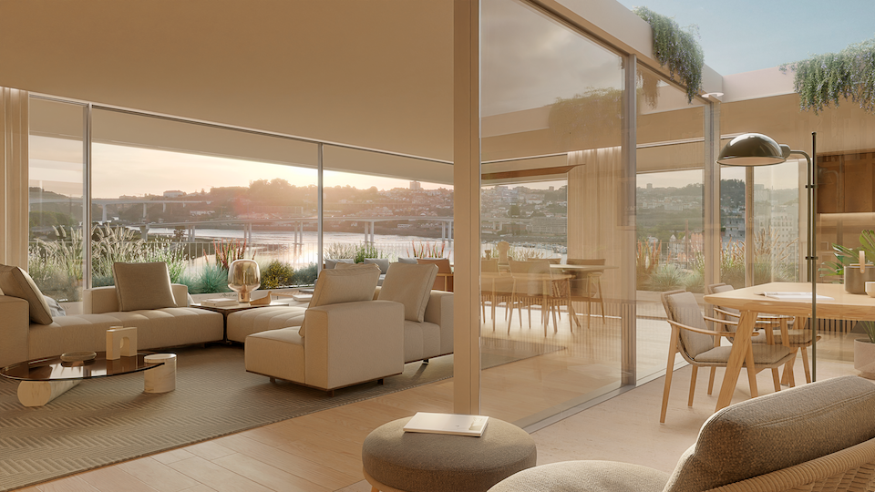 O empreendimento localizado a 10 minutos do centro histórico do Porto, é caracterizado pelos espaços amplos, pela luz natural e pelas varandas e piscinas privadas, com vista para o rio Douro. Os futuros moradores terão também acesso a um ginásio totalmente equipado e um espaço de co-living.