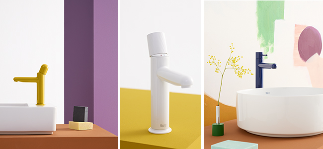 A coleção Nu traz uma abordagem minimalista, funcional e lúdica para as torneiras, com formas simples e uma paleta de cores vibrante.