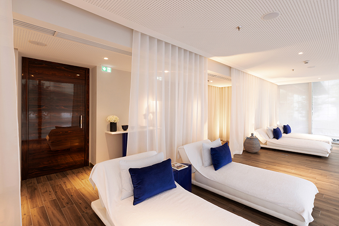 A unidade conta ainda como um dos muitos elementos diferenciadores um restaurante que hostenta duas trelas Michelin, o Palme d’Or, uma piscina e uma praia particular. O spa, agora amplamente remodelado, oferece uma variada gama de excelentes tratamentos suíços. O ambiente exclusivo da nova área de bem-estar conta com soluções Portaro® e revestimentos Vicaima Infinity.