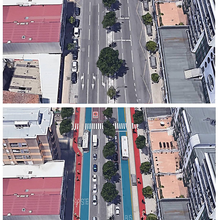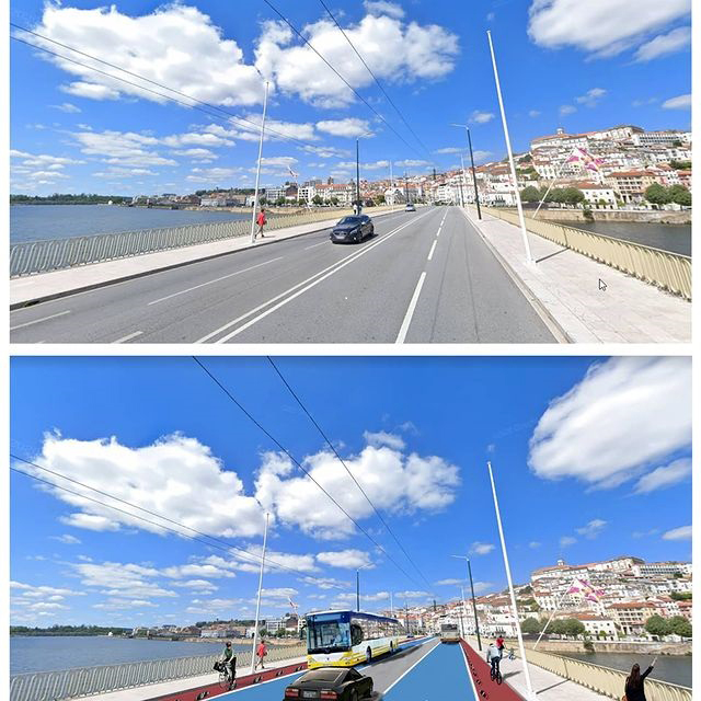 As imagens criadas por Carlos Pinheiro, formado em arquitectura e urbanismo, mostram como poderia ser uma cidade menos centrada no automóvel e focada em meios suaves e transportes públicos, eliminando zonas de estacionamento, acrescentando ciclovias, alargando passeios e reduzindo as velocidades para os carros, explicou à agência Lusa o urbanista de 42 anos.