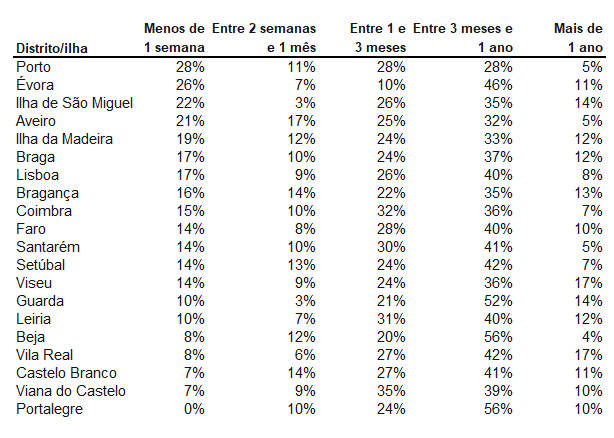 Em relação aos distritos, o mercado comporta-se de outra forma. Foi no distrito do Porto (28%) onde mais casas foram vendidas em menos de uma semana durante o mês de novembro. Seguem-se Évora (26%), ilha de São Miguel (22%), Aveiro (21%), ilha da Madeira (19%), Braga (17%), Lisboa (17%), Bragança (16%), Coimbra (15%), Faro (14%), Santarém (14%), Setúbal (14%), Viseu (14%), Guarda (10%) e Leiria (10%).