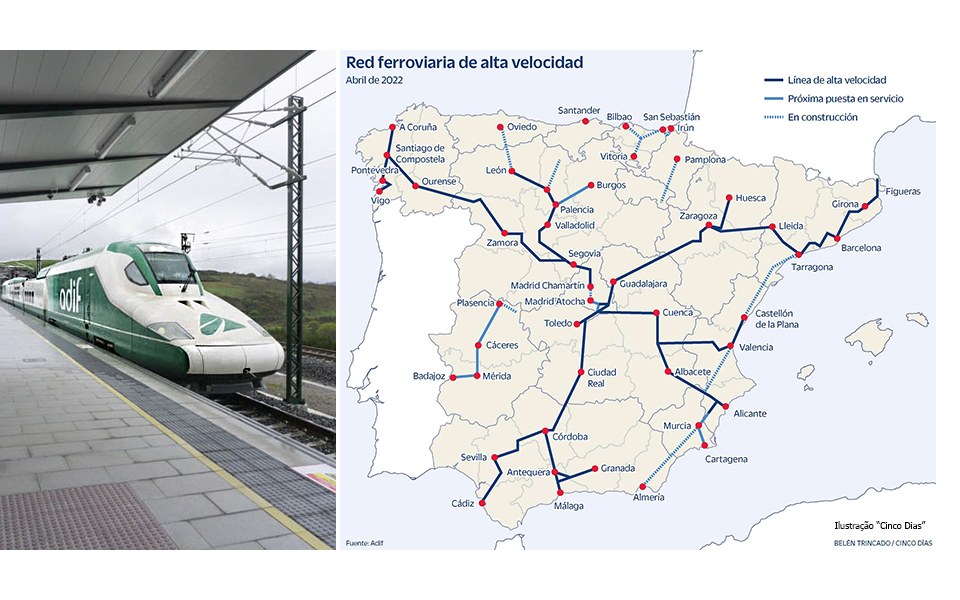 A empresa administradora de Infraestruturas Ferroviárias (Adif) do Estado espanhol, tem como objectivo investir 23,5 mil milhões de euros na rede de alta velocidade até 2025.