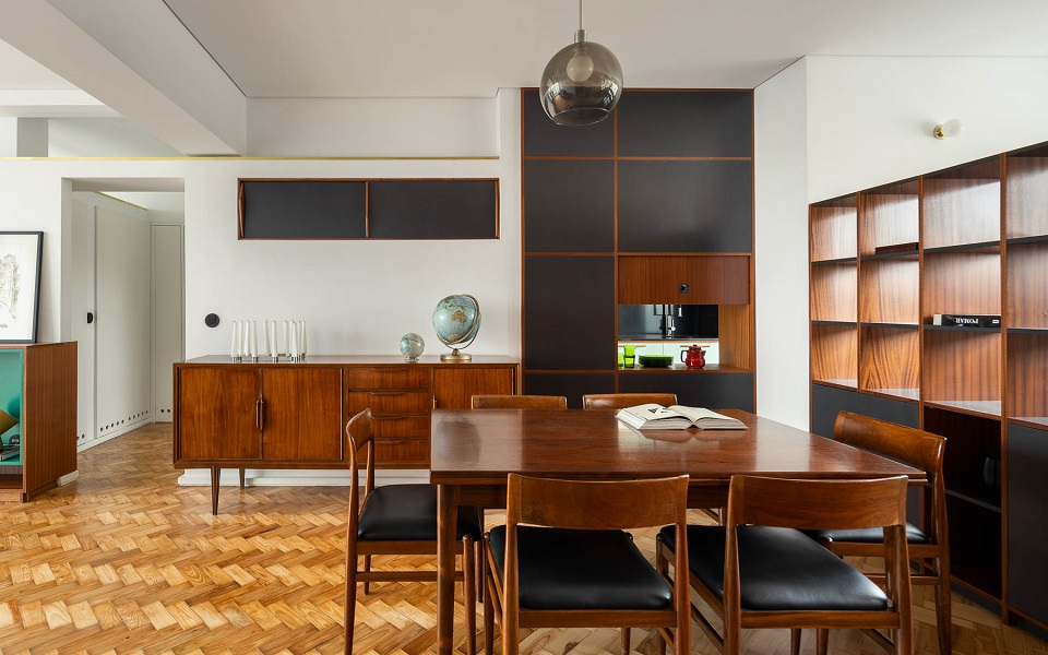 O Apartamento de Santos Pousada desenhado pelos Arquitectos Arménio Losa e Cassiano Barbosa, construído em 1956, ganhou novo brilho mas mantendo a essência da época, num projecto do atelier Hinterland Architecture Studio.