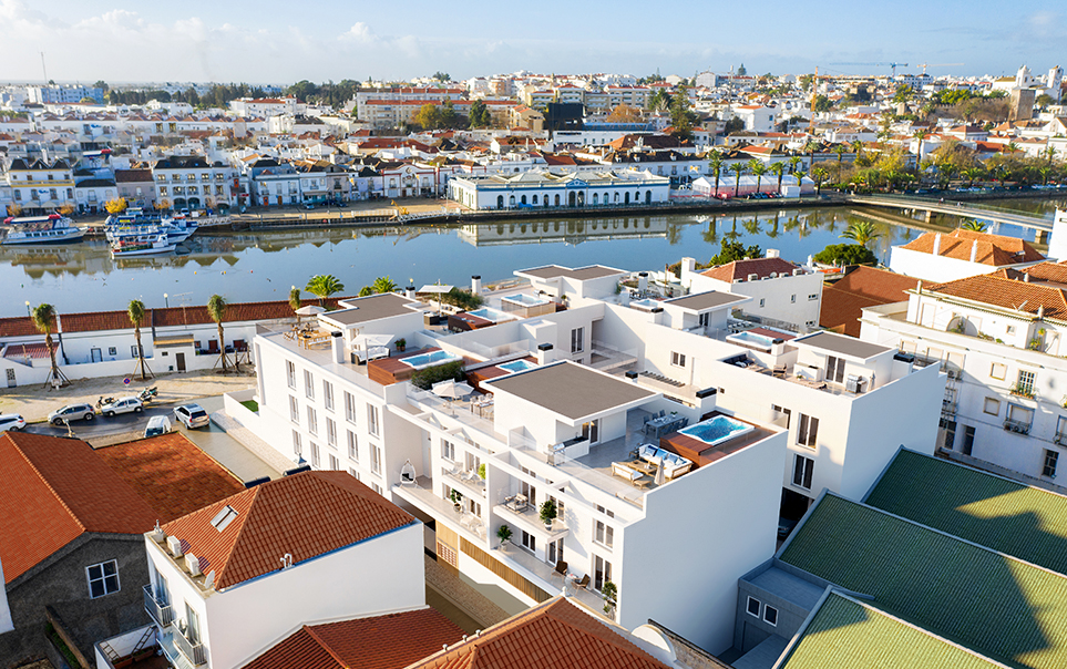 Promovido pela Fazenda Morgadinho SA, o empreendimento oferece 20 apartamentos, únicos pelas suas características, com estacionamento privativo, e localizados na margem leste do rio que atravessa a cidade algarvia.