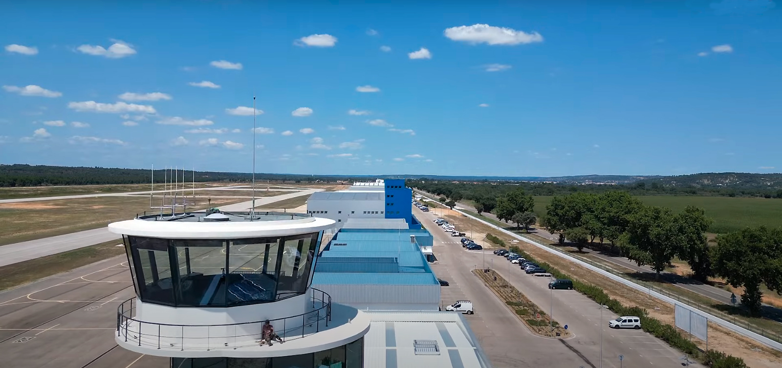 O edifício central, além de concentrar os serviços, também disponibiliza salas de formação, sala de reuniões, sala de conferências, cafetaria, hangar e alguns espaços de lazer.
