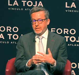 A 2ª edição do Foro La Toja - Vínculo Atlântico, promovida pelo Grupo Hotusa e Fundación La Toja, que hoje decorreu em Lisboa, pretende ser um espaço de diálogo, reflexão e defesa da democracia liberal, e este ano abordou a transição para a democracia de Portugal e Espanha, com o apoio da Comissão Comemorativa 50 anos 25 de Abril.