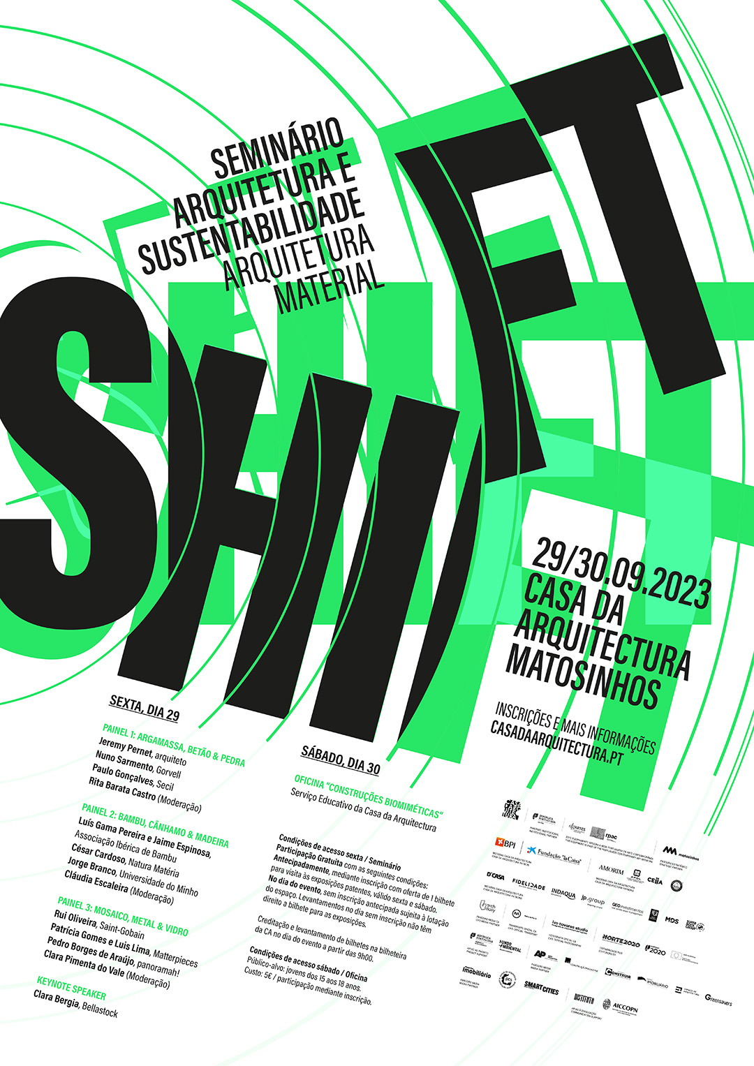 A Casa da Arquitectura e o Ministério do Ambiente e da Acção Climática estão alinhados no entendimento relativo ao papel e à importância da arquitectura no debate das problemáticas de sustentabilidade. Nesse sentido, o Seminário Internacional “Shift – Arquitetura e Sustentabilidade” dedicado ao tema da “Arquitetura Material” irá, segundo o curador, reunir “um conjunto de especialistas de diferentes áreas – prática profissional, indústria e academia – que trazem perspetivas diversas sobre a circularidade dos materiais de construção. Partilham-se experiências, estratégias e projetos sobre materiais específicos, com escalas de produção e níveis de pegada ecológica distintos, refletindo-se sobre as boas práticas da sua aplicação".
