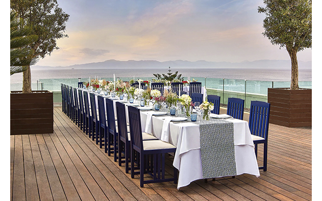 O Sheraton Rhodes Resort continuará a ser operado pela Marriott e oferece 401 quartos, a maioria dos quais com vista para o mar. O resort está dotado de uma vasta gama de instalações de primeira qualidade, incluindo cinco restaurantes, três piscinas exteriores, um spa interior com piscina interior, um clube infantil, instalações desportivas e de lazer, 15 salas de reuniões e mais de 3.000 m2 de instalações MICE (empresas e eventos) para acolher eventos empresariais ou eventos sociais, incluindo casamentos.