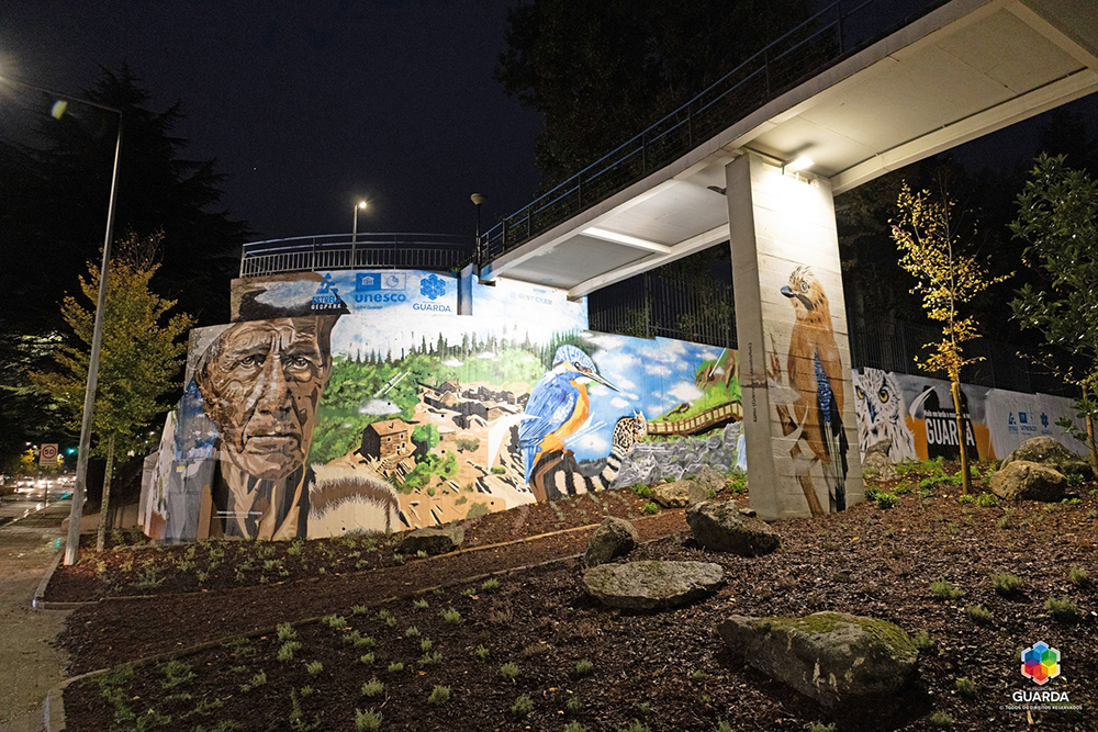 O belo mural retrata valores geológicos e naturais do Geopark, numa celebração da identidade e memória comum do nosso território e a sua inauguração contou com a presença do presidente da Câmara Municipal da Guarda, Sérgio Costa (do movimento Pela Guarda), e o presidente da Estrela Geopark Mundial da UNESCO, Flávio Massano.