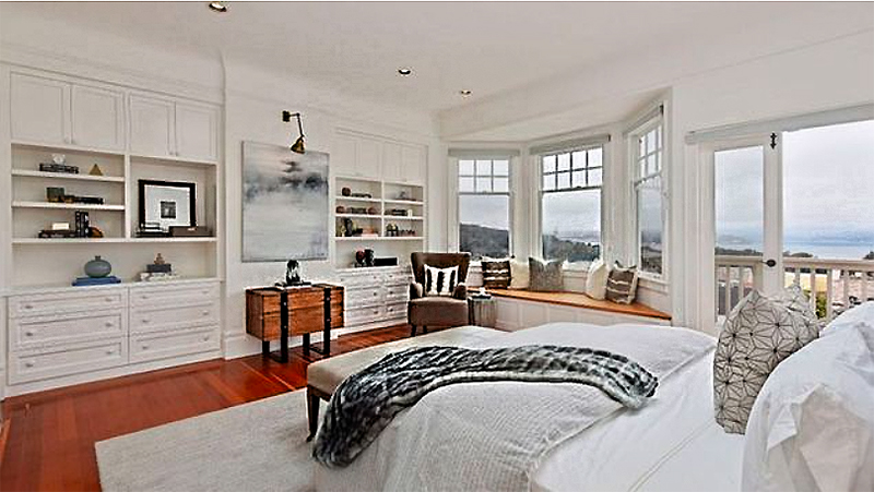 A elegante casa situa-se em Presidio Heights, uma zona de casas antigas nas colinas acima de São Francisco, com vista para a ponte Golden Gate a partir dos andares superiores.