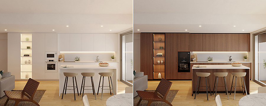 O Unique Tagus, além dos espaços generosos das casa e varandas, disponibiliza uma série de amplos espaços de coliving e co-working, media-room, ginásio, sauna, kids club, zonas verdes e piscinas.