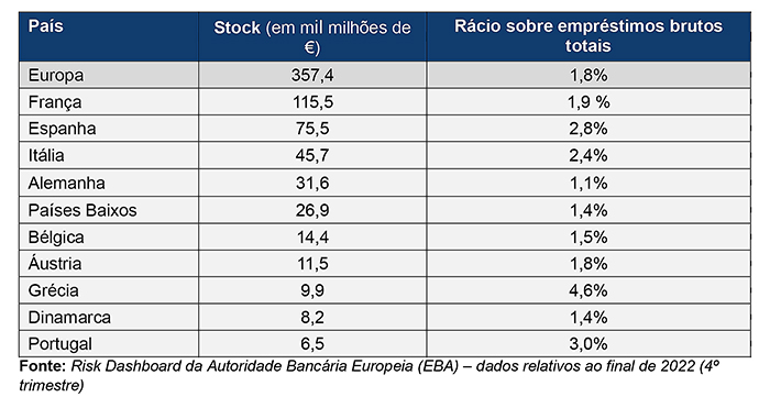 A fotografia atual do crédito malparado na Europa é marcada por um stock total de cerca de €357,4 mil milhões e um rácio (crédito concedido versus crédito malparado) médio de 1,8%. No entanto, como se pode verificar abaixo, os países do sul da Europa apresentam, todos eles, indicadores de rácio muito acima da média e alguns dos stocks mais expressivos da União Europeia, nomeadamente: Itália: 2,4% e €51,2 mil milhões; Espanha: 2,8% e €75,5 mil milhões; Portugal: 3,0% e €6,5 mil milhões; Grécia: 4,6% e €9,9 mil milhões.