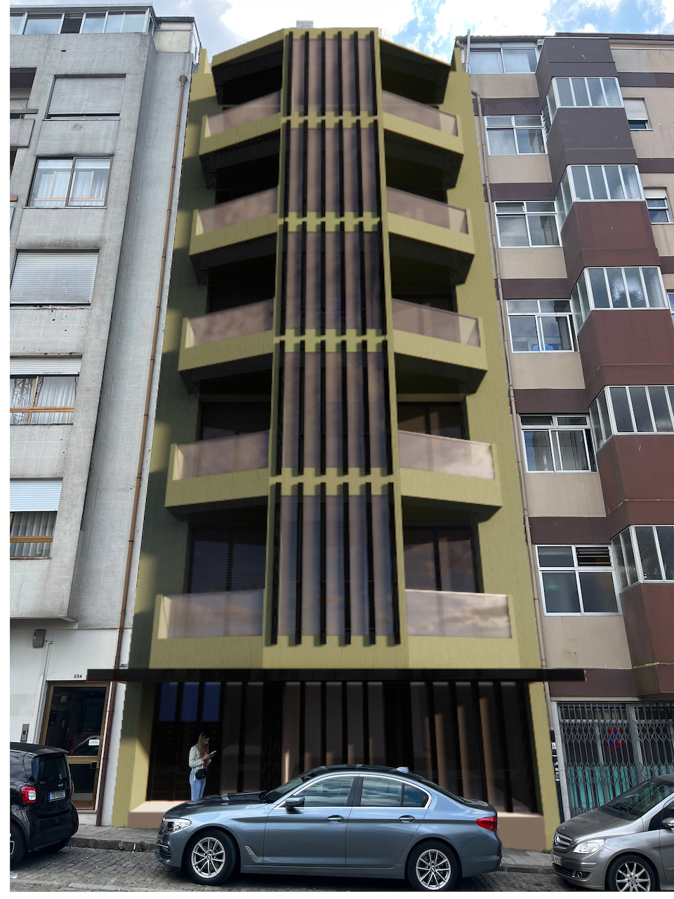 O prédio, constituído por sete andares e uma área bruta privativa de 698.3 m2, vai disponibilizar 12 frações, 11 delas de tipologia T1 e uma T2.