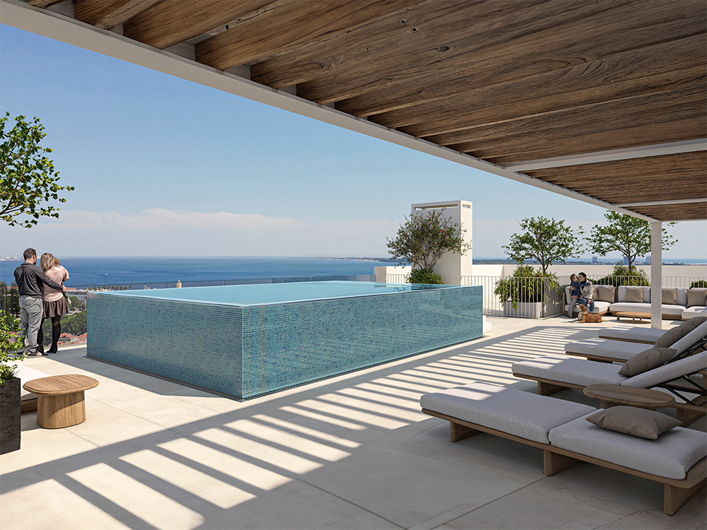 Cada apartamento foi cuidadosamente desenhado para oferecer uma experiência personalizada e de conforto único, através das suas amplas varandas/terraços com áreas entre os 16 e os 52m2 - que funcionam como extensões dos espaços interiores e onde as vistas panorâmicas sobre a Baía do Sado se assumem como principais protagonistas. Churrasqueira, lugar(es) de garagem e acesso a outras amenities, como ginásio equipado e piscina exterior no topo do edifício. O projecto de arquitectura é da autoria do atelier Miguel Amado Arquitectos.