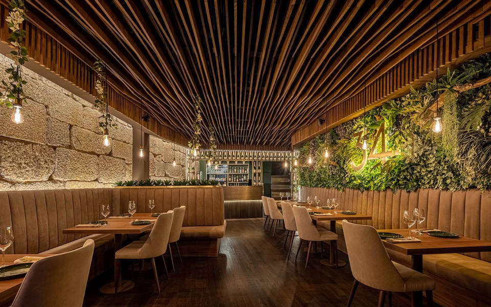 O Restaurante 34 situado na cidade de Guimarães é também um espaço arquitectónico da autoria do atelier REM'A Architects que utilizou uma abordagem desconstruída do movimento “art nouveau”.