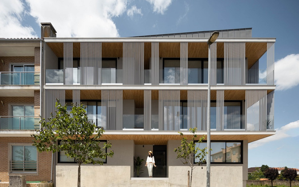 A arquitecta Carolina Freitas projectou um Bloco Habitacional em Albergaria-a-Velha, criando uma pele adicional ao edifício, providenciando a privacidade necessária, um ambiente mais íntimo e regulando a luz para o interior dos apartamentos.