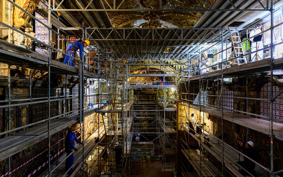 A empresa portuguesa de restauro Samthiago iniciou a intervenção de restauto do retablo maior da Igreja de Santa Mariaa Madalena de Olivença.