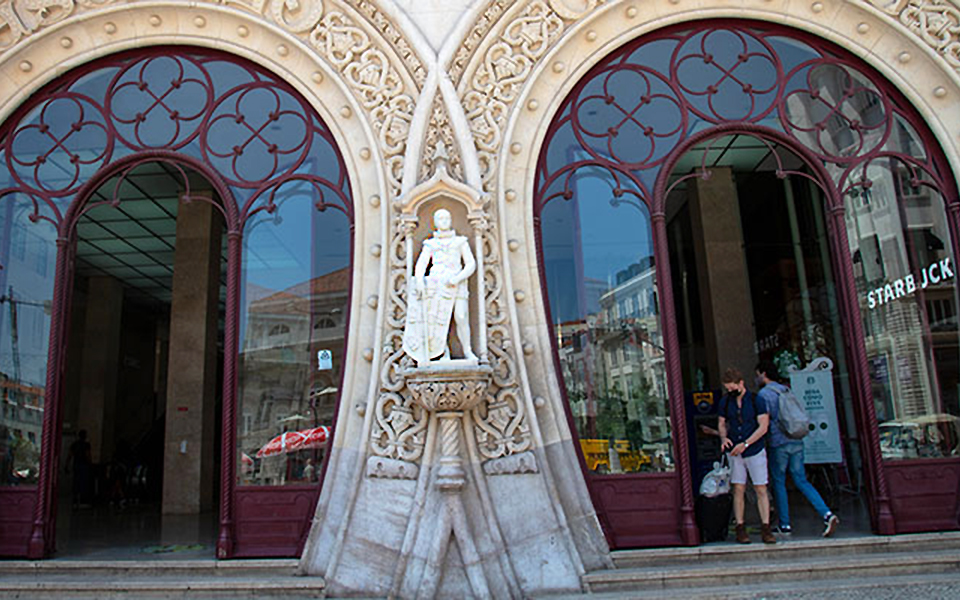 Uma réplica da estátua de Dom Sebastião, derrubada por um turista em 2016, foi ontem colocada na fachada da estação do Rossio, em Lisboa.
